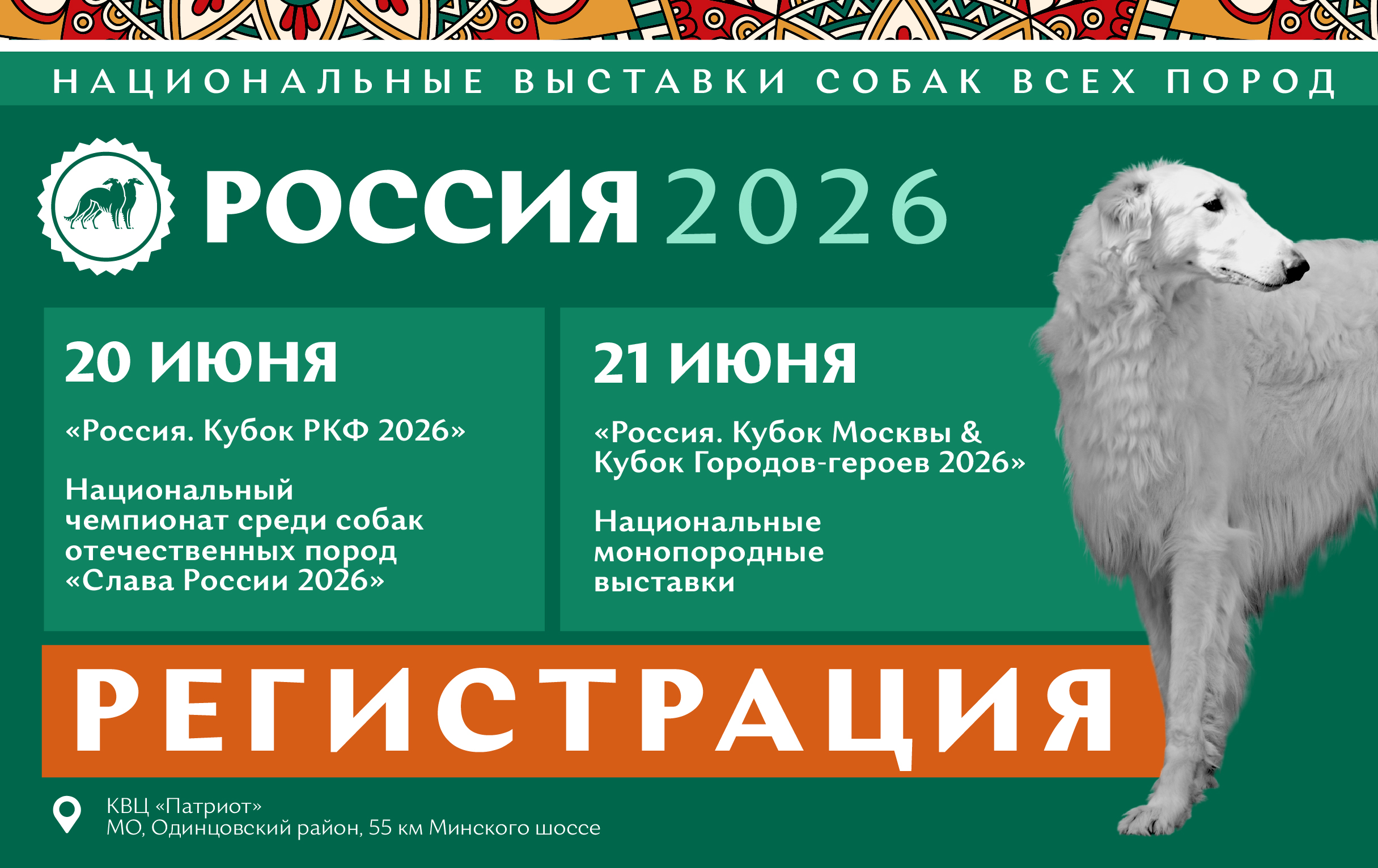 В 2026 году, в год 35-летия РКФ, мы приняли решение провести нашу «Россию» на площадке, которая, во-первых, позволяет нам обеспечить максимальный комфорт для участников, а во-вторых, в полной мере соответствует масштабу и социальной значимости этого крупнейшего зоотехнического мероприятия.