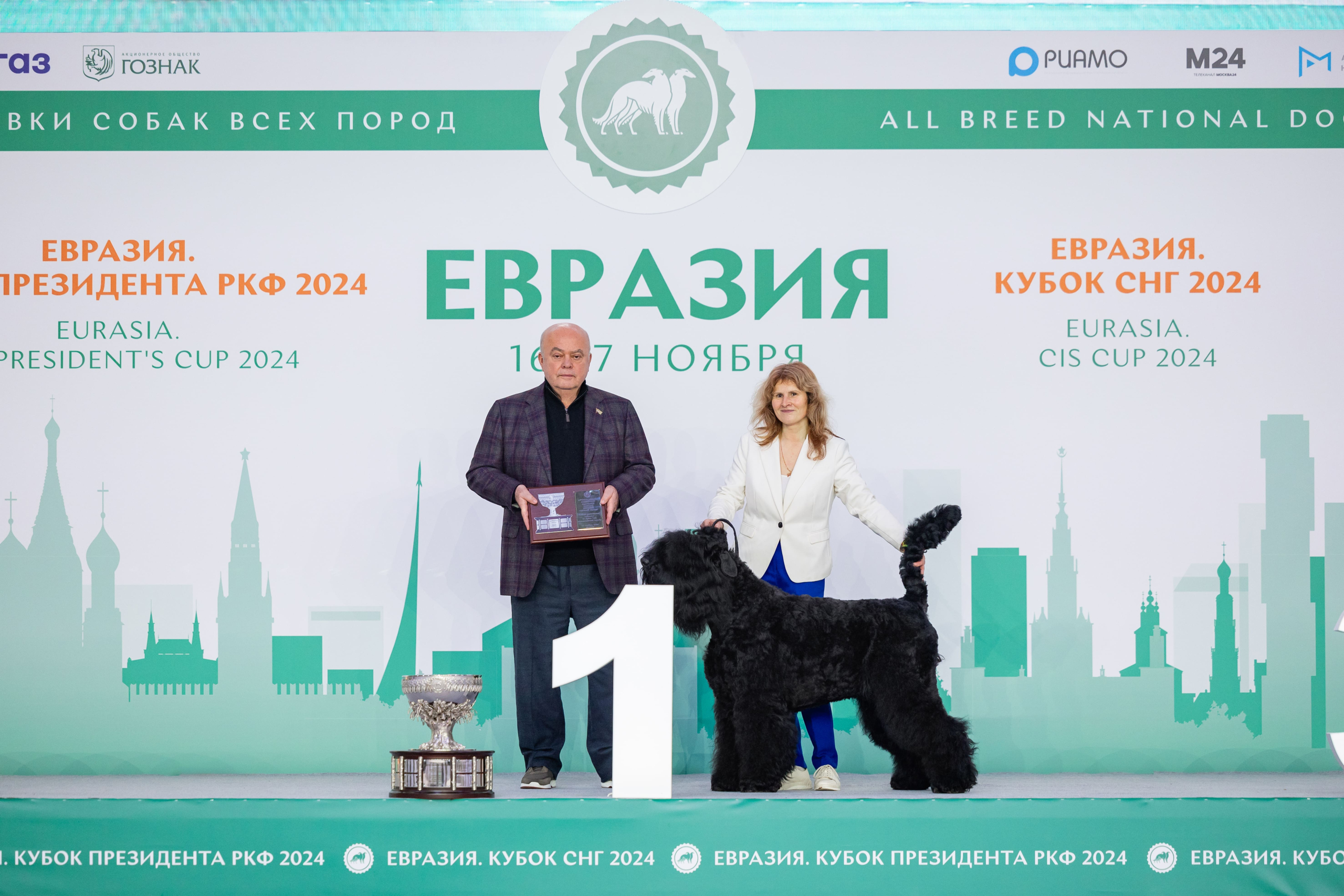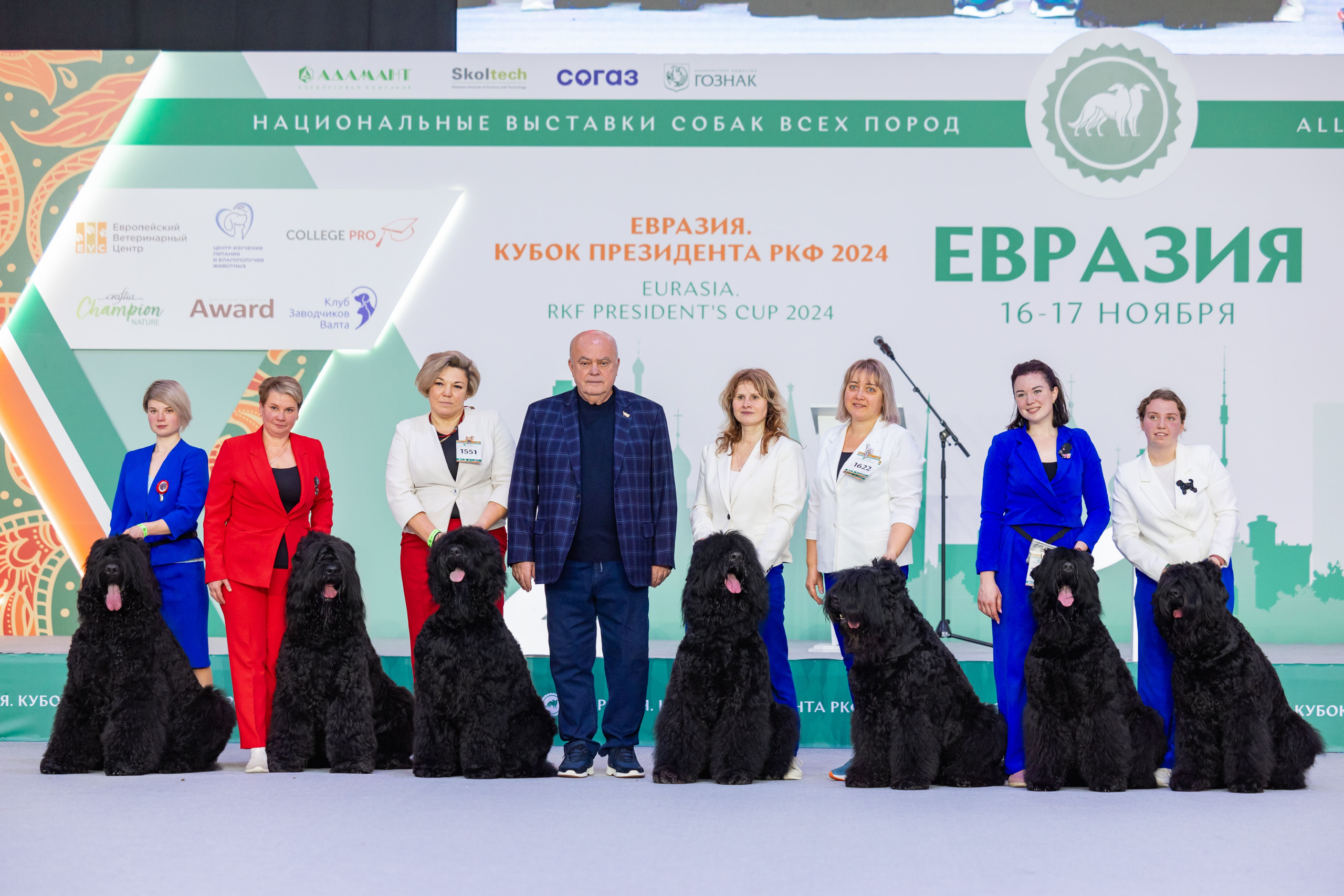 С 16 по 17 ноября в выставочном комплексе «Крокус Экспо» прошли выставки «Евразия. Кубок Президента РКФ 2024», «Евразия. Кубок СНГ 2024» и Всемирная выставка собак породы русский чёрный терьер.