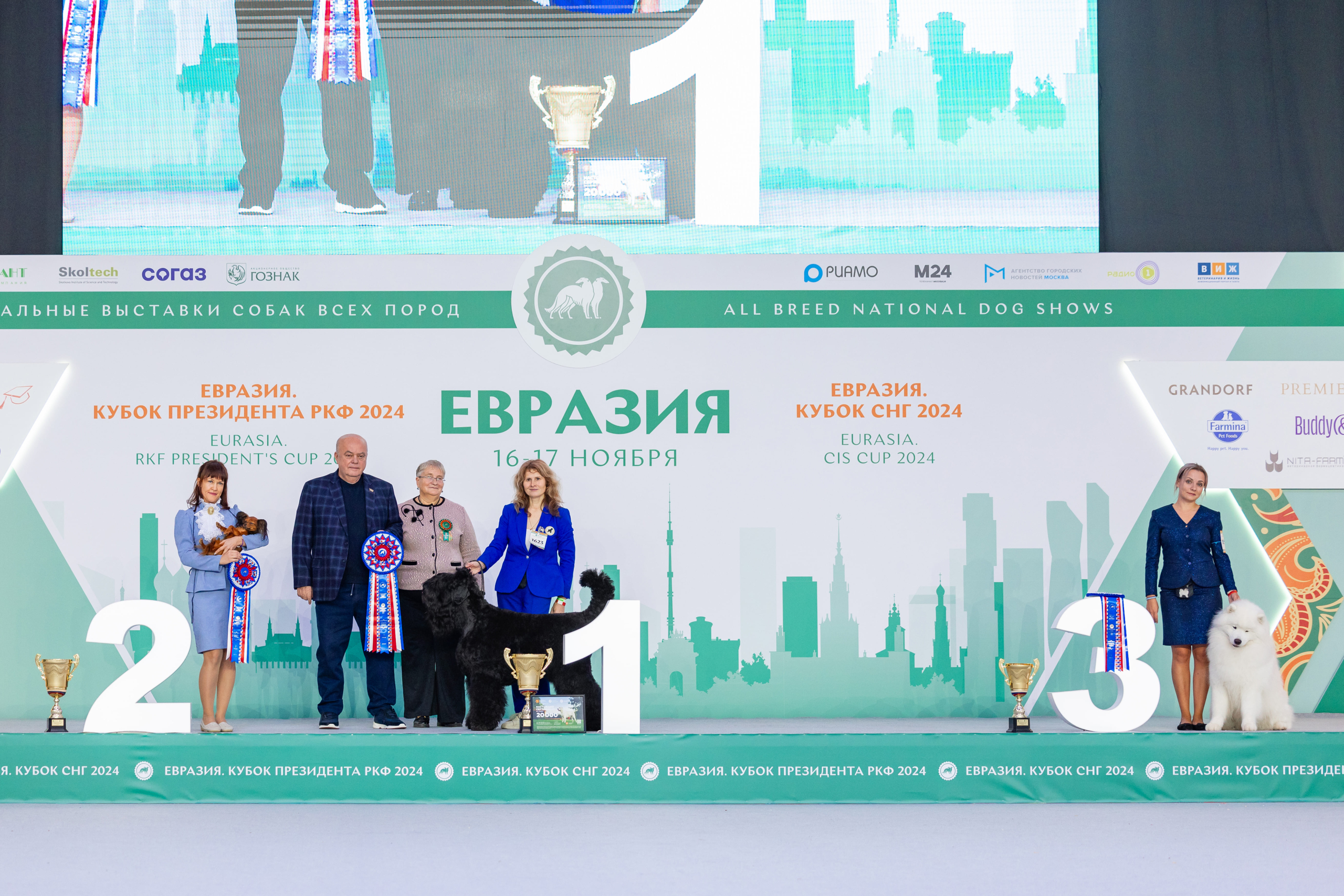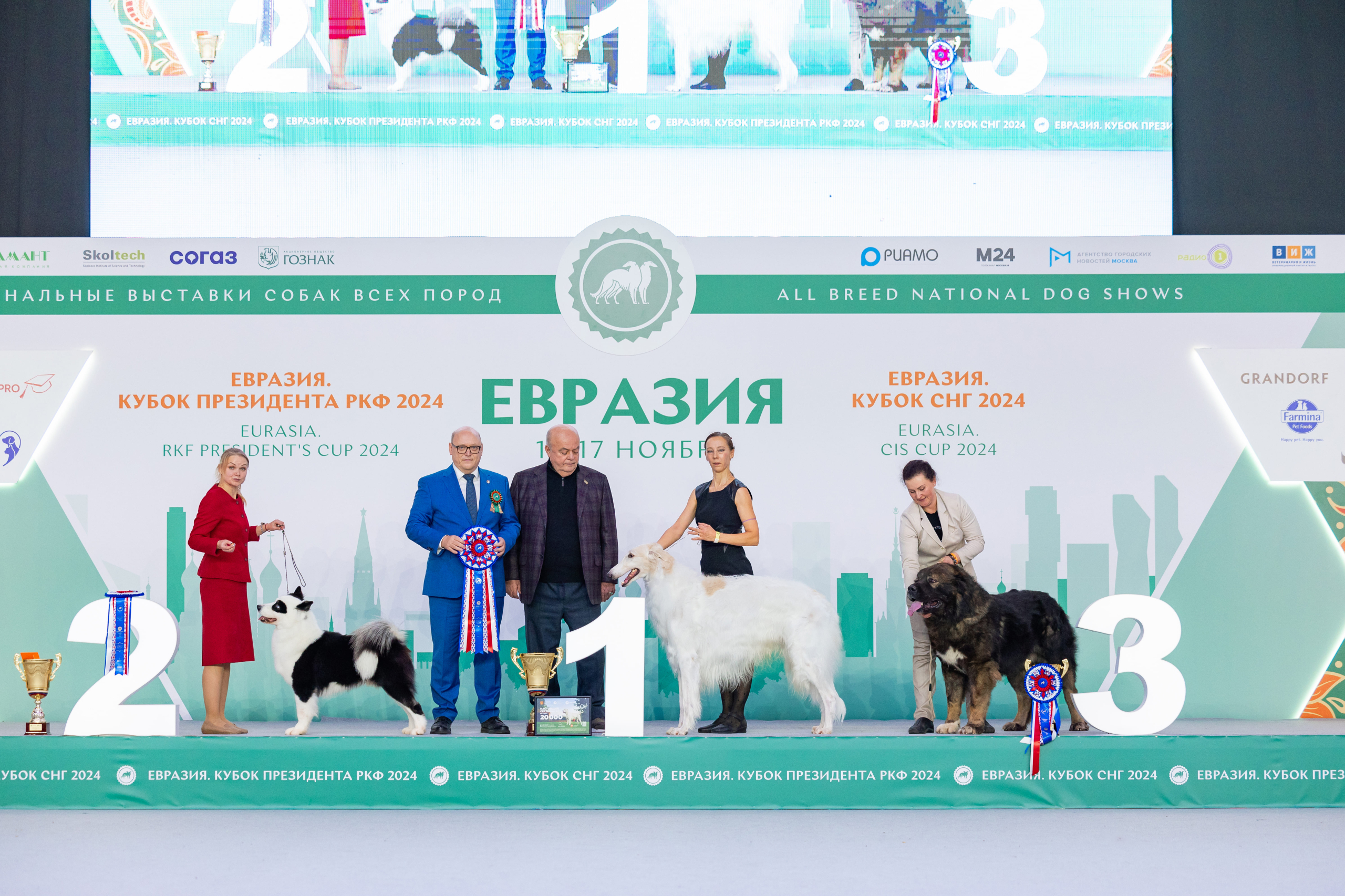 В первый день в тройку победителей вошли русский чёрный терьер, русский той длинношерстный, самоед, а во второй – русская псовая борзая, якутская лайка, кавказская овчарка.