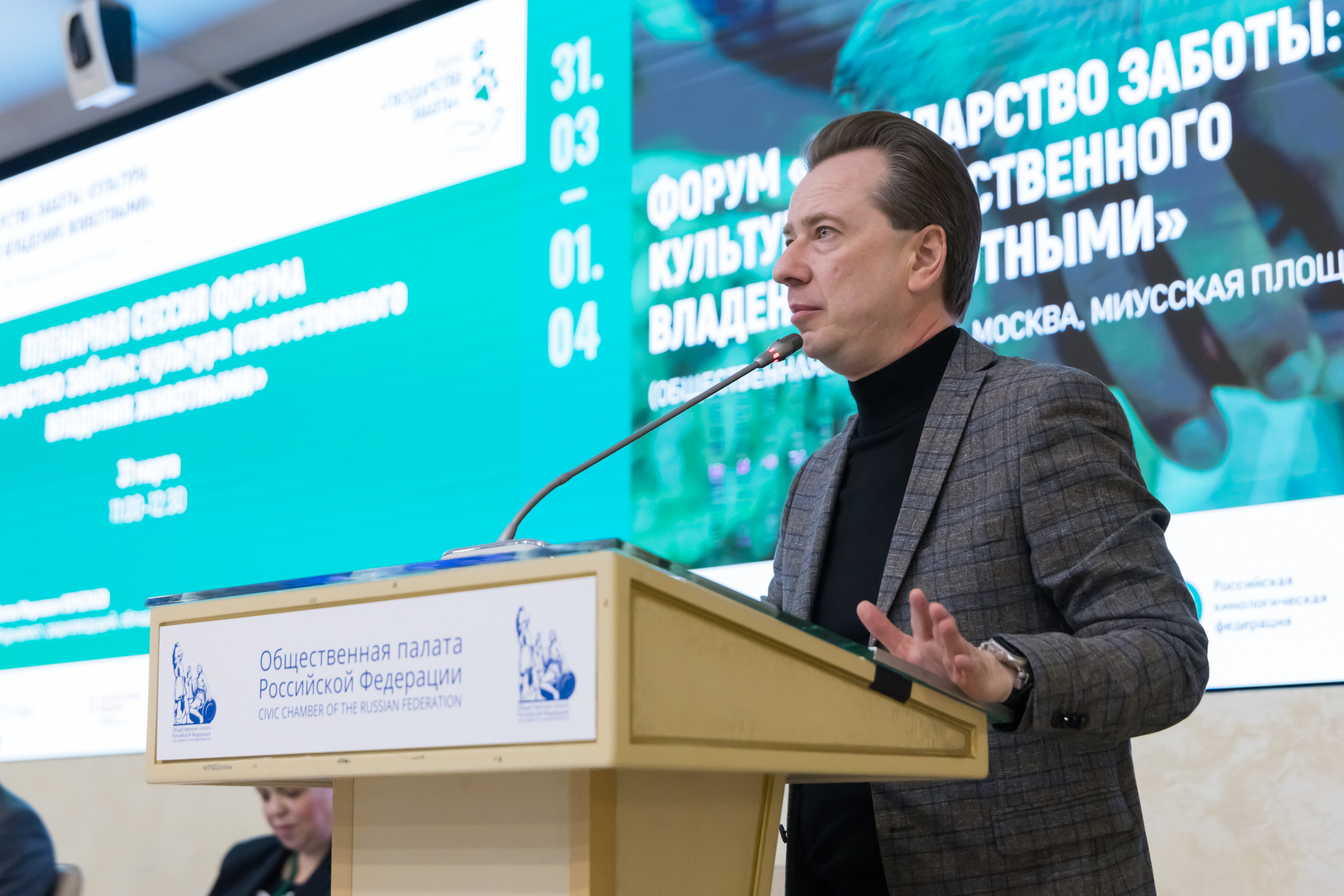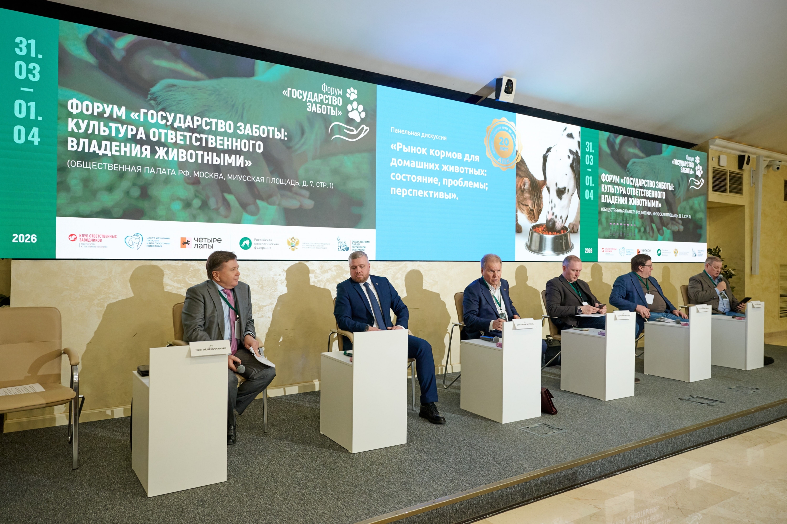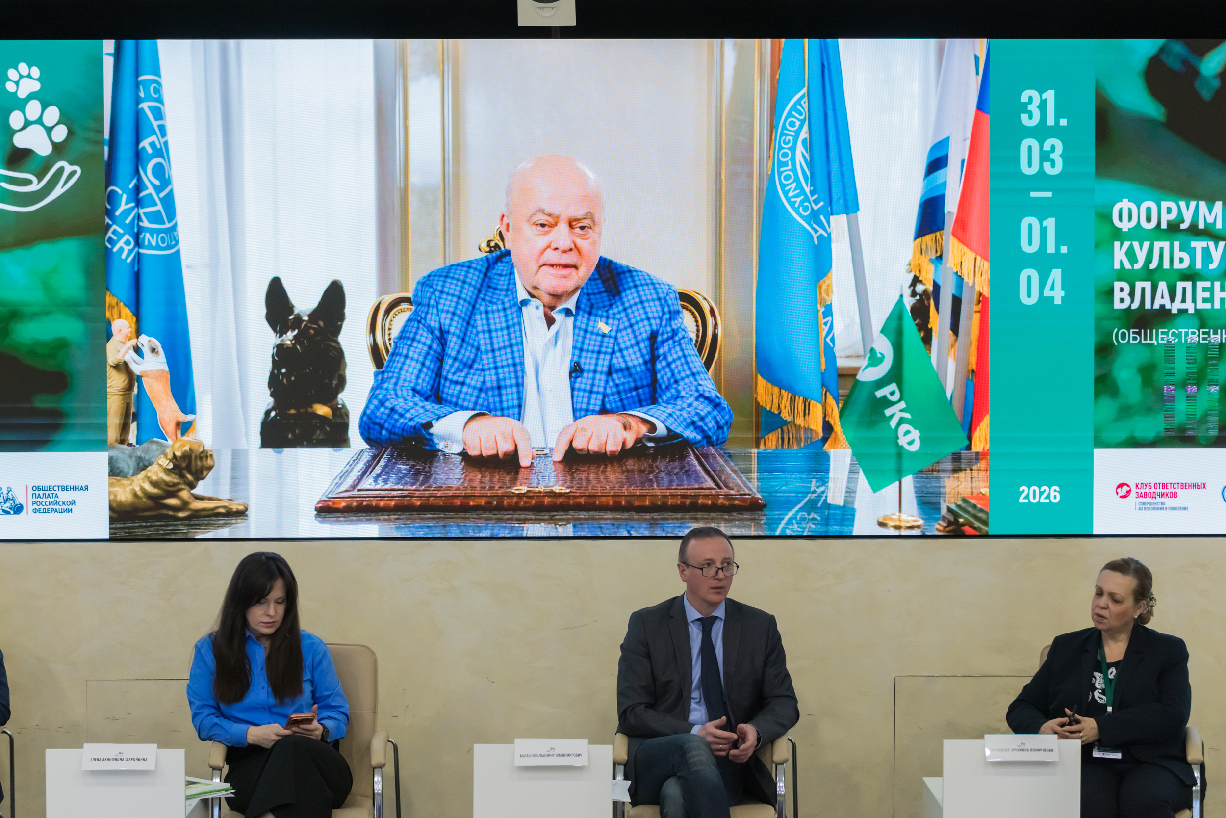 31 марта – 1 апреля 2026 в Общественной палате РФ прошёл Всероссийский форум «Государство заботы: культура ответственного владения животными». Организатором выступила Российская кинологическая федерация при поддержке Министерства природных ресурсов и экологии РФ и Комиссии по экологии и устойчивому развитию Общественной палаты РФ.
